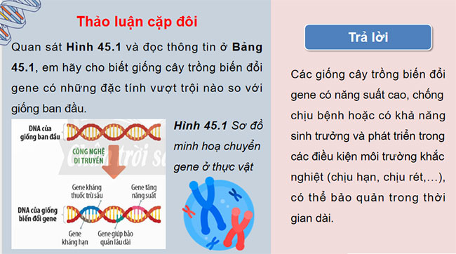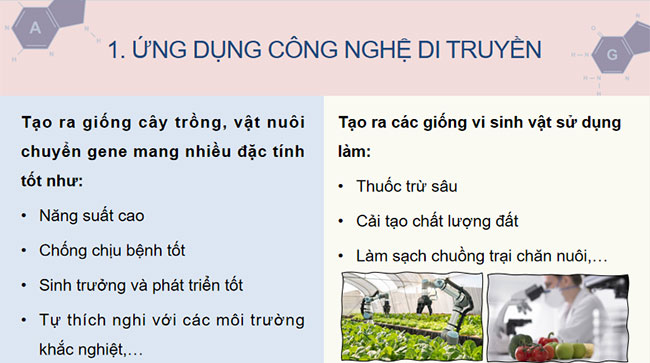 BÀI 45: ỨNG DỤNG CÔNG NGHỆ DI TRUYỀN VÀO ĐỜI SỐNG