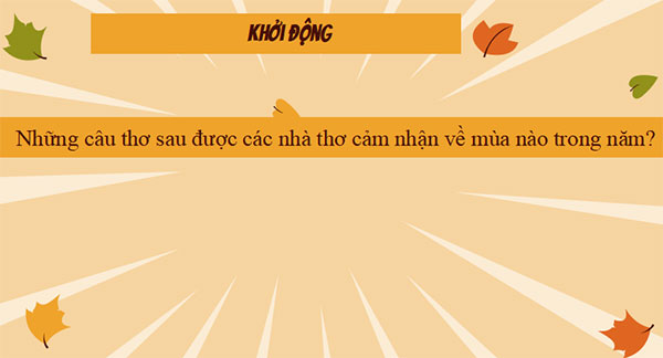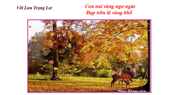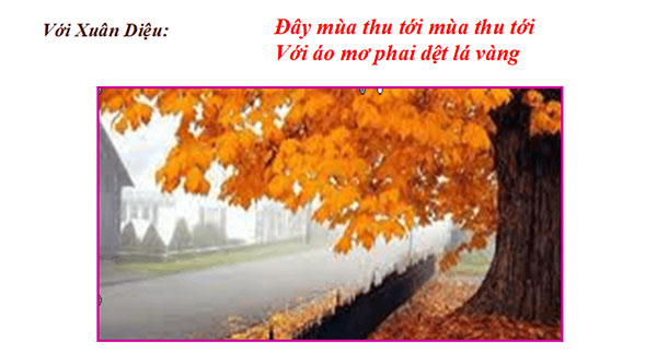 - GV cũng có thể sử dụng các bức tranh kèm theo chú thích bằng các câu thơ viết về mùa thu của các tác giả khác nhau để học sinh cảm nhận về mùa thu và thấy được cảm hứng của thi nhân về mùa thu.