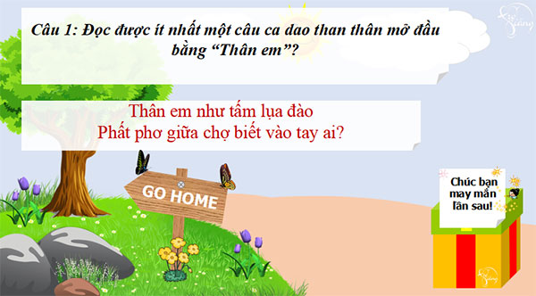 Câu hỏi 1: Đọc được ít nhất một câu ca dao than thân mở đầu bằng “Thân em”? Đáp án: