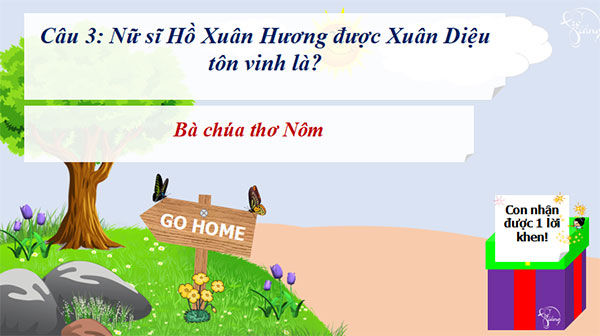 Câu hỏi 3: Nữ sĩ Hồ Xuân Hương được mệnh danh là?