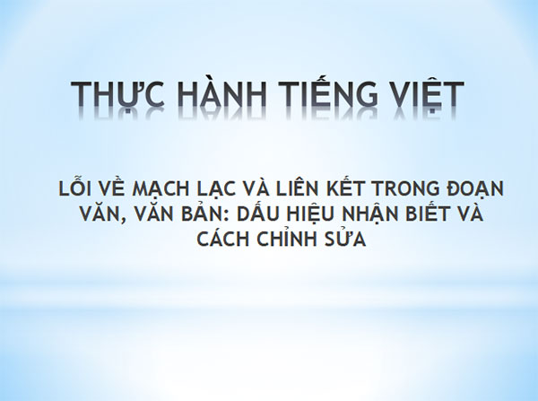 LỖI VỀ MẠCH LẠC VÀ LIÊN KẾT TRONG ĐOẠN VĂN, VĂN BẢN: