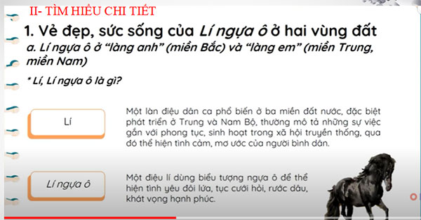 Trên đây là mẫu slide trong giáo án Powerpoint Ngữ Văn 10 sách Chân trời sáng tạo. Để xem toàn bộ bài giảng điện tử của Bài 4: Lý ngựa ô ở hai vùng đất sách CTST, mời các bạn sử dụng file tải về trong bài.