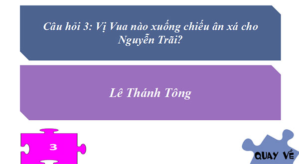 Câu hỏi 3: Vị vua nào xuống chiếu ân xá cho Nguyễn Trãi?