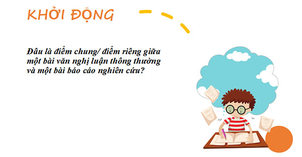 - GV nêu câu hỏi gợi mở để giúp HS hiểu đòi hỏi riêng của một bài báo cáo nghiên cứu. Chẳng hạn: