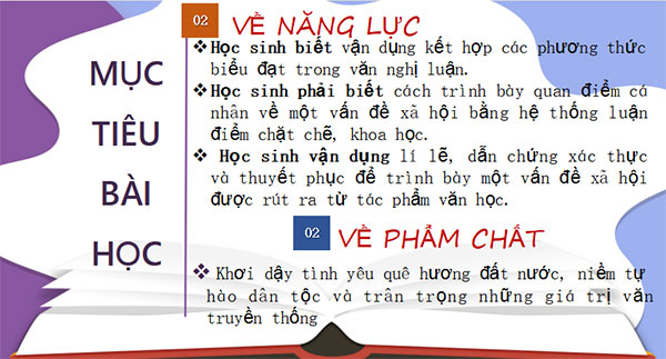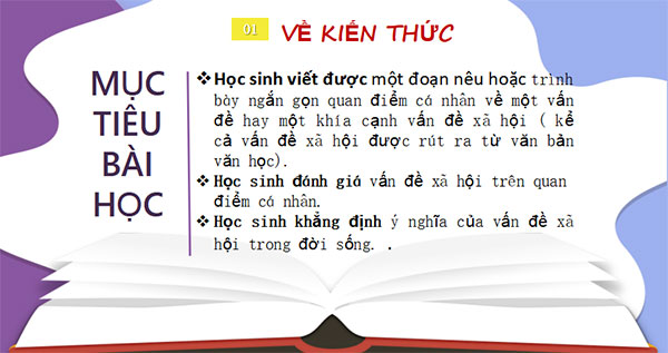 - HS biết cách trình bày quan điểm cá nhân về một vấn đề xã hội bằng hệ thống luận điểm chặt chẽ, biết sử dụng các bằng chứng xác thực, phù hợp, thuyết phục.