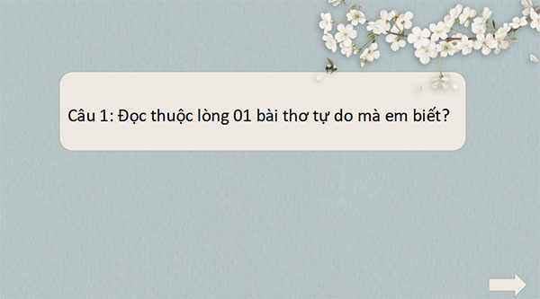 + Câu 1: Đọc thuộc lòng 01 bài thơ tự do mà em biết?