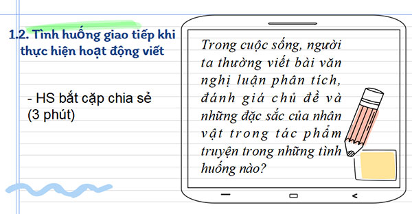 2. Hoạt động giới thiệu tình huống giao tiếp khi thực hiện bài viết
