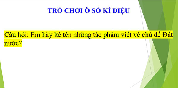 - GV đặt câu hỏi: Em hãy kể tên những tác phẩm viết về Đất nước ? ( phụ lục 1)