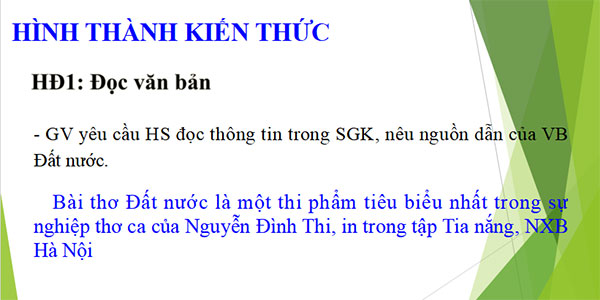 - GV yêu cầu HS đọc thông tin trong SGK, nêu nguồn dẫn của VB Đất nước.
