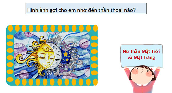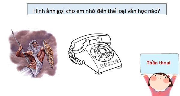 - GV dẫn dắt vào bài mới: Trong hệ thống truyện thần thoại của Việt Nam về sự sáng lập vũ trụ, truyện “Thần Trụ Trời” được coi như truyện mở đầu, tiếp theo đó là các truyện về các thần khác như thần Mưa, thần Biển, thần Gió, thần Mặt Trời, Mặt Trăng và tiếp đến nữa là các truyện về thần sáng tạo ra muôn vật và loài người như Cuộc tu bổ các giống vật, Mười hai bà mụ. Thần ở đây là thần của thần thoại không phải là thần trong thần tích hay thần nghĩa theo mê tính dị đoan, mà là nhân vật chính trong các câu truyện, được nhân dân hình dung như lực lượng có thật, có hình dạng, có sức mạnh phi thường, nhiều phép lạ, làm nên những kỳ tích lớn lao, tác động tới con người. Để hiểu và thấy được cái hay, cái đẹp, cái đặc sắc của thần thoại Việt Nam, hôm nay cô và các em may mắn được học thần thoại “Trần Trụ trời”.
