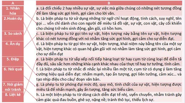 - Có ý thức sử dụng biện pháp tu từ khi viết bài.