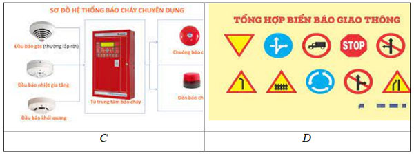 D. Hình vẽ biển báo giao thông (Đáp án : A,B,C,D)