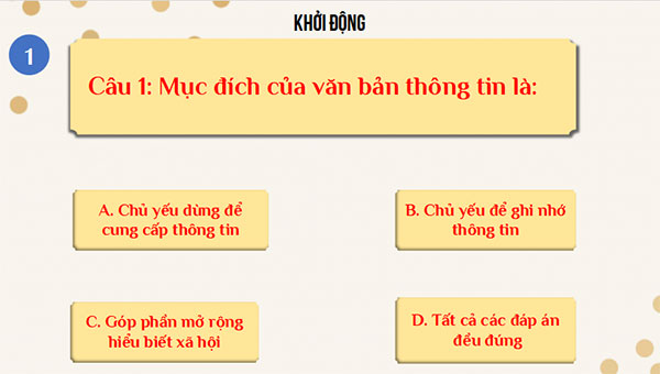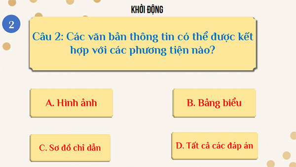Câu 2: Các văn bản thông tin có thể được kết hợp với các loại nào?