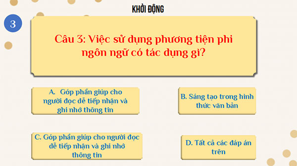 Câu 3: Việc sử dụng phương tiện phi ngôn ngữ có tác dụng gì?