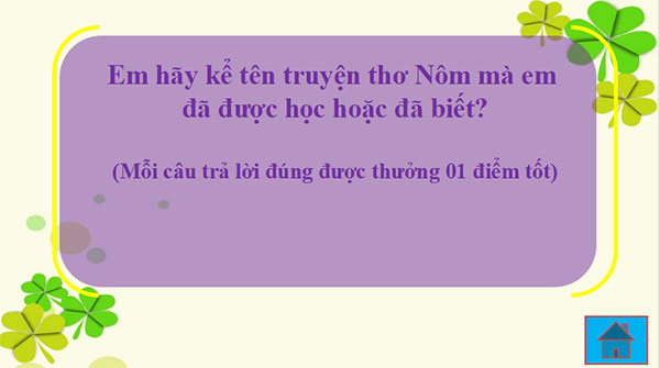 - Mỗi câu trả lời đúng, HS được 1 điểm tốt.