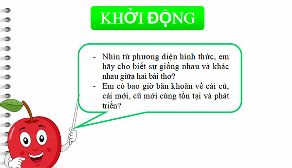 b. Nội dung: Vận dụng kĩ năng phân tích, kĩ thuật động não để nhận diện sự khác biệt cơ bản giữa thơ cũ và thơ mới trên một vài bình diện cơ bản.