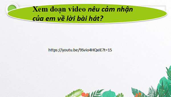 https://youtu.be/9Svio4HQxIE?t=15; HS lắng nghe và trả lời câu hỏi theo gợi ý: