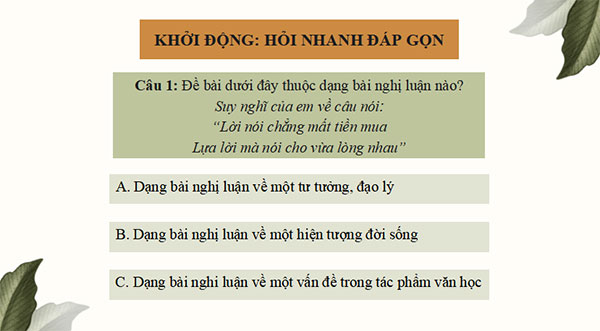 A. Dạng bài nghị luận về một tư tưởng, đạo lý