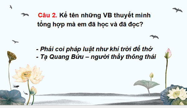 Câu 2. Kể tên những VB thuyết minh tổng hợp mà em đã học và đã đọc?