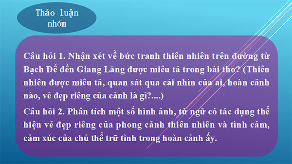 Học sinh phân tích tác dụng của nhịp điệu bài thơ trong việc thể hiện vẻ đẹp đặc trưng của bức tranh phong cảnh.