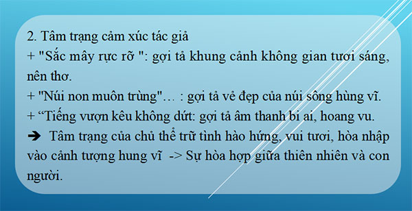 ❖ Học sinh phân tích tác dụng của nhịp điệu bài thơ trong việc thể hiện vẻ đẹp đặc trưng của bức tranh thiên nhiên được miêu tả trong bài thơ.