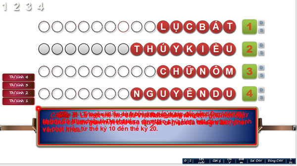 c) Sản phẩm: Câu trả lời và thái độ khi tham gia trò chơi (có 4 thí sinh tham gia trò chơi)