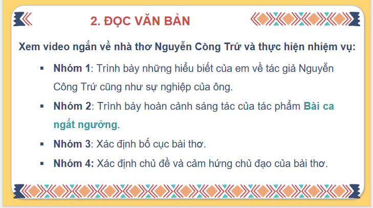 VĂN BẢN 1: BÀI CA NGẤT NGƯỞNG