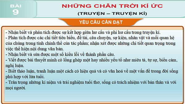 - Nhận biết và phân tích được một số yếu tố của truyện kí.