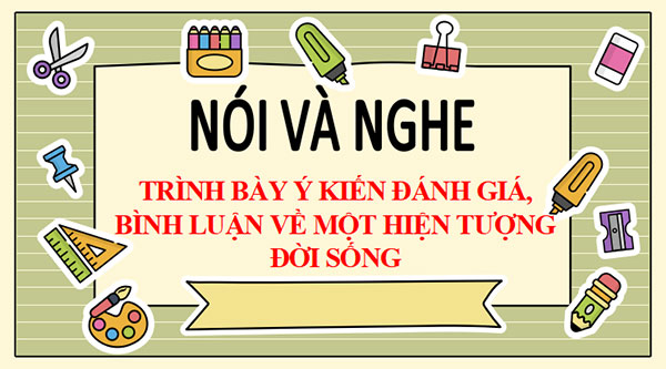 - Biết trình bày ý kiến đánh giá, bình luận về một hiện tượng đời sống; phân tích được các quan điểm trái ngược nhau; nêu được nhân xét hợp lí về nội dung thuyết trình và đặt câu hỏi về những điểm cần làm rõ.
