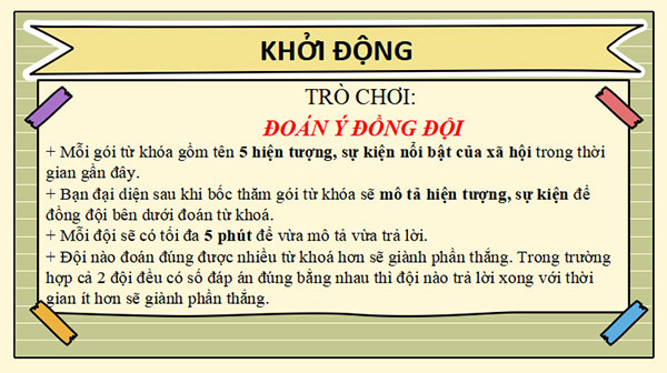 + Bạn đại diện sau khi bốc thăm gói từ khóa sẽ mô tả hiện tượng, sự kiện để đồng đội bên dưới đoán từ khoá.