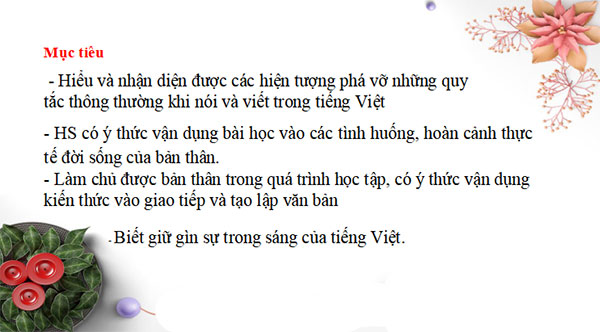 Hiểu và nhận diện được các hiện tượng phá vỡ những quy tắc thông thường khi nói và viết trong tiếng Việt