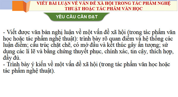 Viết được bài luận về một vấn đề xã hội (trong tác phẩm văn học hoặc tác phẩm nghệ thuật)