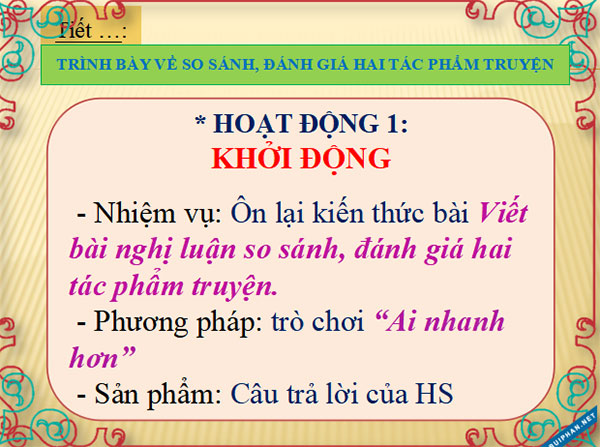 Giáo án PowerPoint Ngữ văn 12 Bài 1: Trình bày kết quả so sánh, đánh giá hai tác phẩm truyện sách Cánh Diều được biên soạn kỹ lưỡng, cách trình bày khoa học các bài trong năm học giúp thầy cô sẽ tiết kiệm khá nhiều thời gian trong quá trình soạn giáo án của mình. Kế hoạch bài dạy Ngữ Văn lớp 12 trong bài viết dưới đây sẽ giúp học sinh tiếp thu kiến thức tốt nhất, đồng thời giúp giáo viên có một cách dạy mạch lạc, rõ ràng, dễ hiểu.