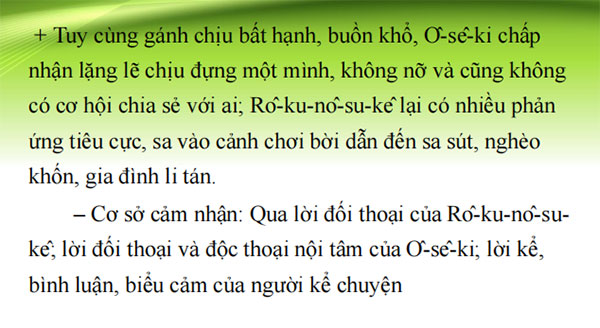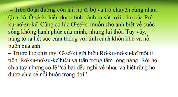 – Một số đặc điểm cơ bản của phong cách hiện thực; khái niệm về tính chỉnh thể của tác phẩm, sự kiện trong tác phẩm truyện; các giá trị của tác phẩm văn học.