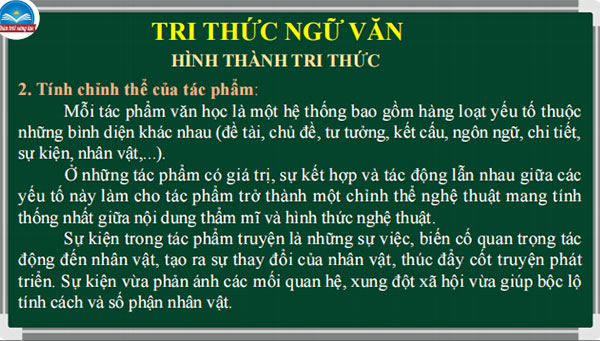- Một số đặc điểm cơ bản của phong cách hiện thực; khái niệm về tính chỉnh thể của tác phẩm, sự kiện trong tác phẩm truyện; các giá trị của tác phẩm văn học.