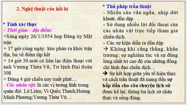 + Nhận biết và phân tích được sự kết hợp giữa một số thủ pháp nghệ thuật với tính phi hư cấu trong hồi kí.