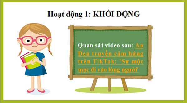 - GV cho hs xem video về nữ youtuber An Đen – nhân vật tiêu biểu cho thấy được vai trò quan trọng của cảm hứng và sáng tạo đối với cá nhân và cộng đồng. (An Đen truyền cảm hứng trên TikTok: 'Sự mộc mạc đi vào lòng người')