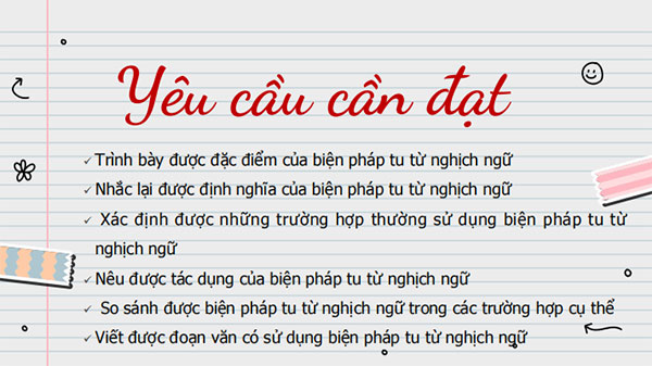 - Viết được đoạn văn có sử dụng biện pháp tu từ nghịch ngữ