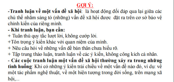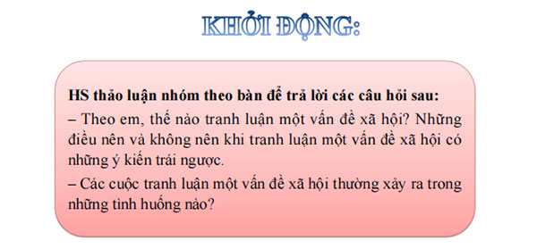 – Kích hoạt được kiến thức nền liên quan đến kĩ năng tranh luận một vấn đề xã hội có những ý kiến trái ngược.