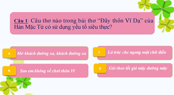 *Giao nhiệm vụ: - GV yêu cầu HS đọc kĩ mỗi câu câu hỏi trên màn hình chiếu. -Thời gian: 30 giây/ một câu hỏi *Thực hiện nhiệm vụ: -Tham gia trò chơi nhiệt tình *Báo cáo kết quả: *Đánh giá kết quả: - Học sinh và giáo viên đánh giá kết quả thực hiện nhiệm vụ của các cặp đôi tham gia. - GV chốt kiến thức và chuyển dẫn vào nội dung ôn tập |