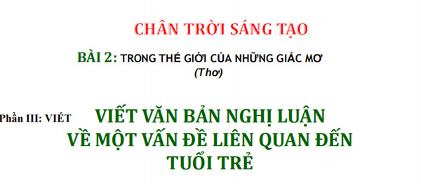 Bài giảng Văn 12 Chân trời sáng tạo Bài 6: Viết bài văn nghị luận về một vấn đề liên quan đến tuổi trẻ