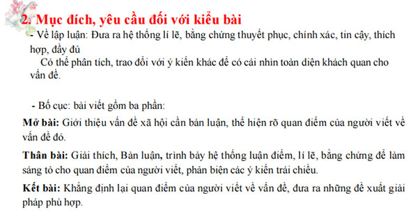 Viết văn bản nghị luận về vấn đề xã hội: trình bà rõ quan điểm và hệ thống các luận điểm; cấu trúc chặt chẽ, có mở đầu và kết thúc gây ấn tượng; sử dụng các lí lẽ và bằng chứng thuyết phục, chính xác, tin cậy, thích hợp, đầy đủ.