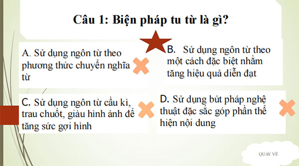 B1. Chuyển giao nhiệm vụ - GV chuẩn bị câu hỏi đặt vấn đề và các câu hỏi gợi mở giúp HS giải quyết vấn đề. Câu 1: Trong các ngữ liệu sau, ngữ liệu nào có sử dụng biện pháp tu từ nghịch ngữ? a. Lòng em nhớ đến anh Cả trong mơ còn thức (Xuân Quỳnh) b. Hạnh phúc của một tang gia (Vũ Trọng Phụng) c. Kẻ sát nhân lương thiện (Lại Văn Long) d. Mọc giữa dòng sông xanh Một bông hoa tím biếc (Thanh Hải) e. Nhưng biết yêu anh cả khi chết đi rồi (Xuân Quỳnh) Câu 2: Trong giao tiếp hàng ngày, các em hãy tìm những ví dụ có sử dụng biện pháp tu từ nghịch ngữ. B2. Thực hiện nhiệm vụ: HS suy nghĩ, thực hiện nhiệm vụ. B3. Báo cáo thảo luận: HS trả lời cá nhân/nhóm. Dự kiến câu trả lời của HS: B4. Đánh giá kết quả thực hiện - GV nhận xét về kiến thức, thái độ của học sinh: Hướng học sinh đến sự lịch sự, tự tin, nhanh tay nhanh mắt, tương tác tốt với người nghe. - GV giới thiệu bài mới: Trình chiếu mục tiêu bài học |