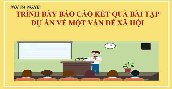 Cách trình bày báo cáo kết quả bài tập dự án về một vấn đề xã hội, cách sử dụng các phương tiện hỗ trợ phù hợp.