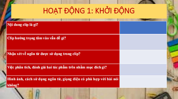 HOẠT ĐỘNG 1: KHỞI ĐỘNG