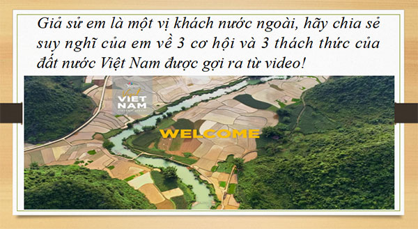 b. Nội dung: GV cho HS xem video https://www.youtube.com/watch?v=6ajqYDuE6dg và gợi dẫn: cơ hội và thách thức đối với đất nước ta hiện nay là gì? Chia sẻ về một vấn đề liên quan đến cơ hội và thách thức đối với đất nước.