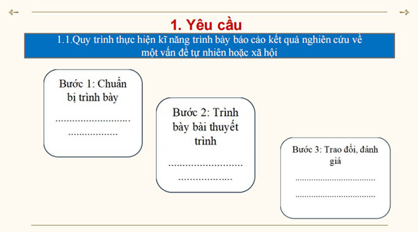 – Nói: Biết trình bày báo cáo kết quả nghiên cứu, sử dụng các phương tiện hỗ trợ phù hợp.