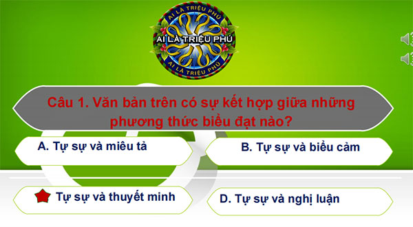 Câu 1. Văn bản trên có sự kết hợp giữa những phương thức biểu đạt nào?