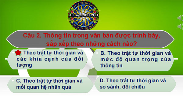 Câu 2. Thông tin trong văn bản được trình bày, sắp xếp theo những cách nào?