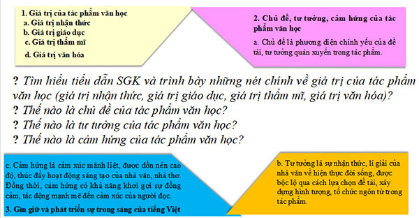 - Phân tích dược giá trị nhận thức, giáo dục và thẩm mĩ của tác phẩm; phất hiện được giá trị văn hoá, nhân sinh từ văn bản.